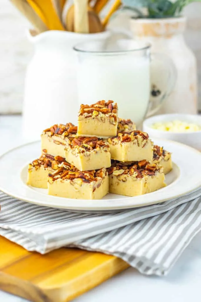 I love an indulgent slice of pecan pie. However, I don’t always have the time to make the crust and pecan pie filling. I also don’t have the time to wait for it to bake. That’s why this easy fudge recipe is a lifesaver!